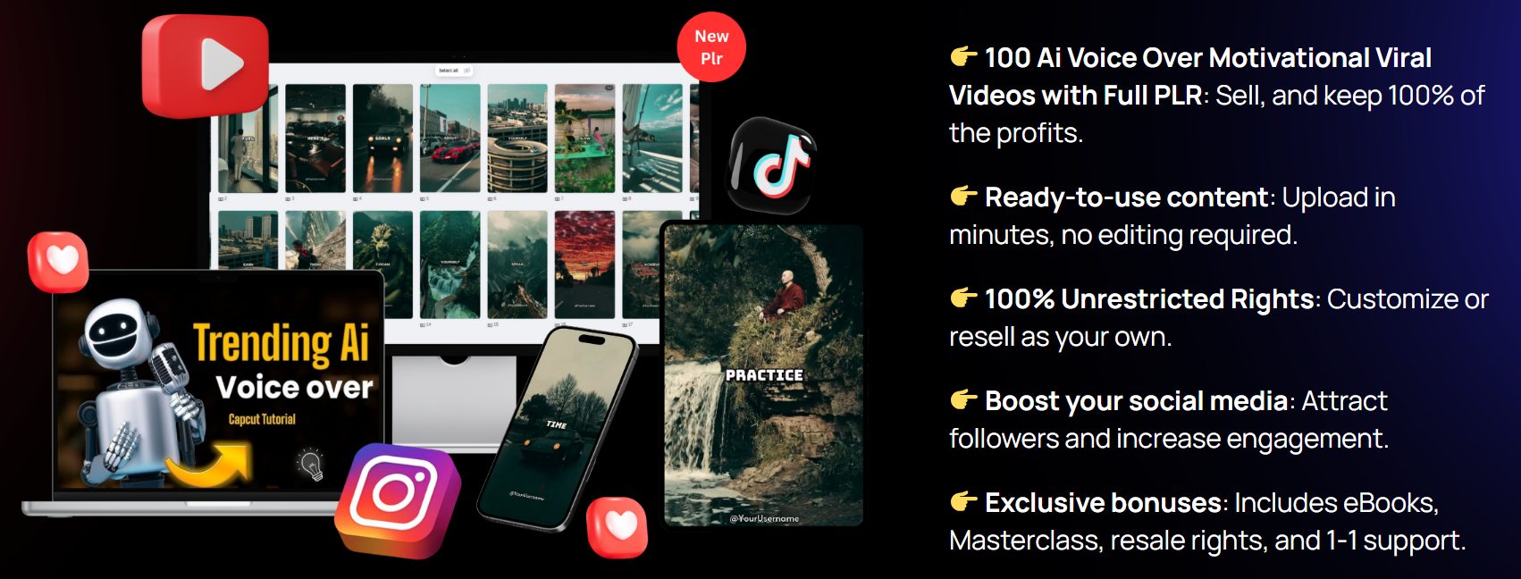 If you purchase Ai Voice Over Motivational Viral Video through the link in this article, you’ll receive a free $100k bonus. This bonus includes exclusive resources and tools to further enhance your content creation journey. Don’t miss this incredible opportunity to elevate your videos to the next level!
